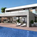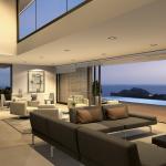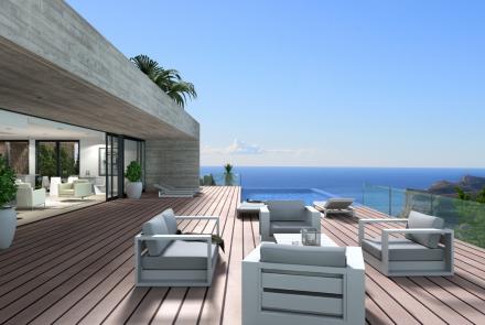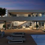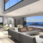 This luxurious villa offers glorious sea views and has a built area of over 300m², with three bedrooms, all with en suite bathrooms, dressing room and/or fitted wardrobes, and direct access onto the villa’s different terraces for enjoying the Mediterranean sunshine, climate and views. The main floor houses the dining room,an open-plan area giving onto the veranda and the main terrace with swimming pool via an enormous window. In the summer, it can be opened wide to create a single space with access to a kitchen with ample central island. The property has a garage for two vehicles. Entry to the garage is via the hall, which has a large window onto the dining room and a large open space on the ground floor of some 100m² which can be arranged in endless ways to meet every customer’s requirements. A villa which combines modern design with open-plan, light and useful spaces. It is designed to be enjoyed both indoors and outdoors.