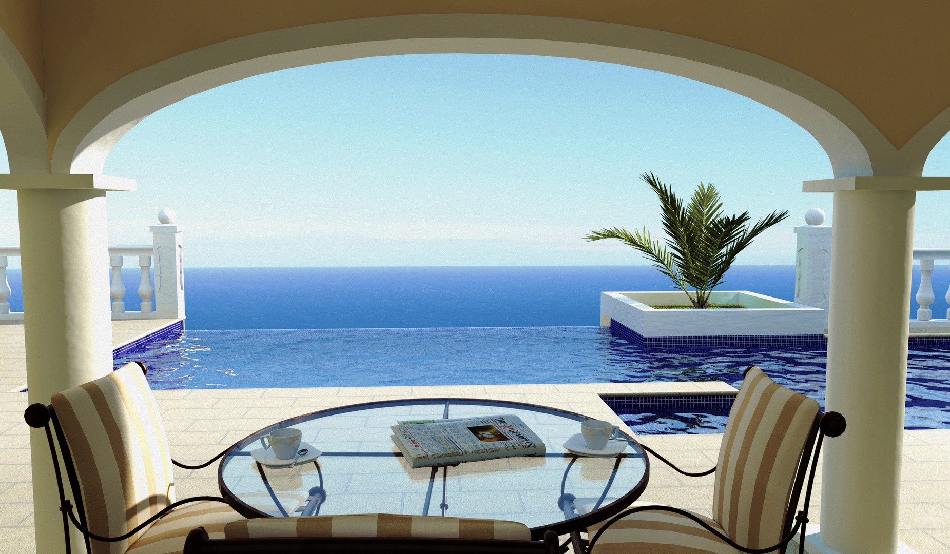 On the left wing of the ground floor there is a great treat for those who enjoy looking after themselves: a gym room, a jacuzzi with sea views, a sauna, a shower room, plus an additional bedroom with en suite bathroom ideal for guests. On the right wing, we find the main terrace which houses the pool and barbecue area with a large outdoor kitchen, a bathroom, a storage room and a spacious veranda with magnificent sea views. The pool is spectacular: not only is it an infinity pool but also the water surface visually fuses with the Mediterranean Sea.