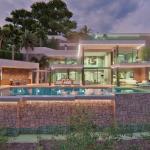 Buiten is er het enorme infinity-zwembad en de ingebouwde jacuzzi van 82 m², poolhouse met sauna, woonkamer en badkamer.