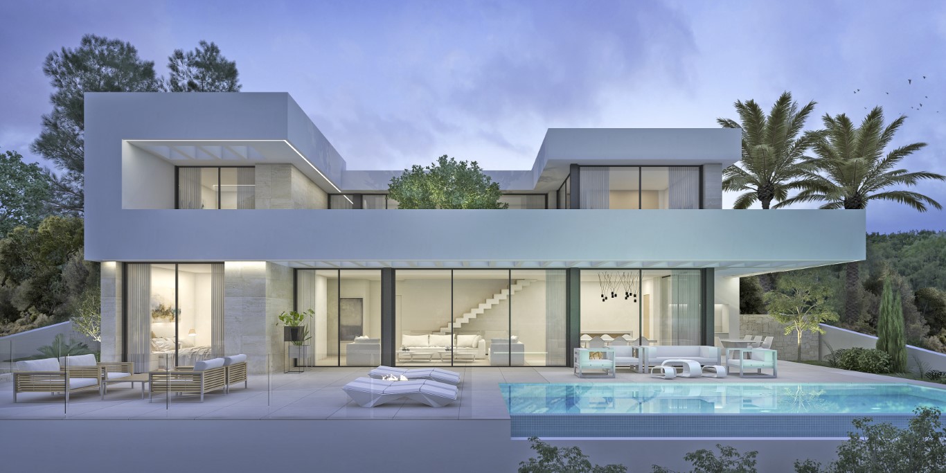 Project voor een moderne villa met een nuttige oppervlakte van 270m2 en 180m2 terrassen op een perceel van 755m2.
