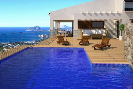 The terrace is an essential part of the house and is fitted with "Visendum" technological wood flooring, which also continues right the way around the house. The widest area of the terrace and the intense blue pool are adjacent to the left wing of the villa, strategically located to enjoy magnificent sea views. The barbecue area is complete with an outdoor dining area so that you can enjoy the privileges of the Mediterranean climate. Back inside the house, we can now focus on the right wing where the bedrooms are located, an area divided into two levels. The first level features a spacious sitting area, decorated to match the main lounge and leading on to the master bedroom. The master bedroom consists of three large interconnecting rooms: the bedroom with access to the terrace, the bathroom with a whirlpool bath and a walk in closet. The second level consists of three bedrooms all with en suite bathrooms and two of them with direct access to the terrace and wonderful sea views.