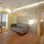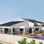 A modern villa with a carefully designed sequence of indoor and outdoor spaces that includes all the indispensable features of a family home. A customized house all on one floor with three different sections that adapt the building to the incline of the plot and provide sea views from the entire house. The house is divided into two clearly identifiable wings that are distinguished as day and night areas. Upon entering the house one can admire the magnificent hall and its expanse of glass that connects us with the outdoors and the sea. The left wing of the house is dedicated to daytime use, the centre of which is a spacious lounge and dining area that combines parquet flooring with walls in nude tones and white. Adjacent to the lounge we find the kitchen: a spacious and bright room with high gloss lacquered units, featuring a central island containing the hob; the work surface that stretches out from the island is ideal as a breakfast bar or dining table for meals on the run. The kitchen connects to a veranda with a lovely seating area and gives access to the open terrace with the pool and barbecue area.