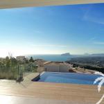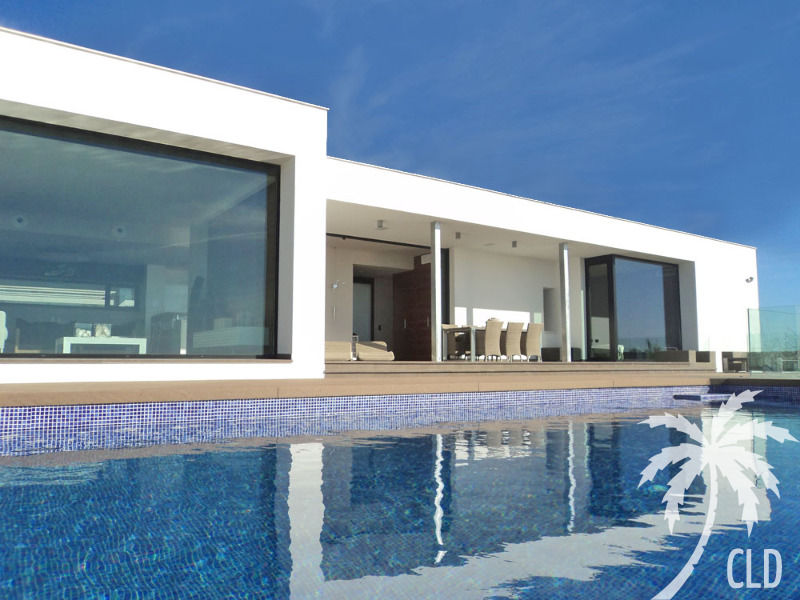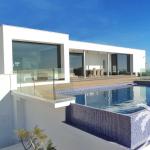 Luxury modern villa on an elevated south west facing plot with beautiful sea views. The house is on one level and has a garage en storeroom below with interior access to the main living area.
