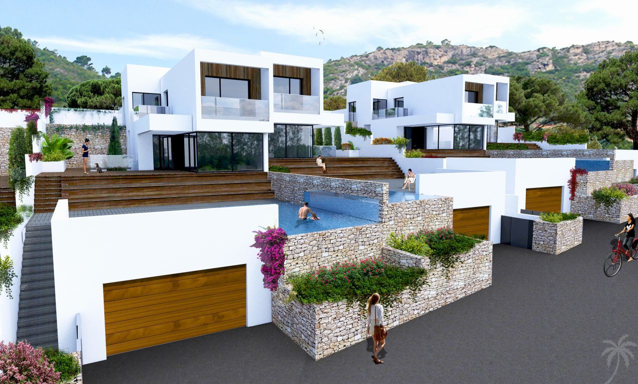 This modern villa is being built to the highest quality standards on a plot of 500 m2 only 2km from Moraira town center and only 2 minutes away from the lovely beach of El Portet. The house has a constructed area of 374 m2 and consists of 4 bedrooms and 3 bathrooms split over three levels. This project is created to provide pure comfort and relaxation.