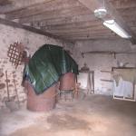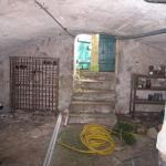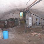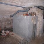 We gaan aan de straatzijde de gewelfde kelder binnen, de eerste met de warmwater boiler en een eigen bronwatervoorziening (er is ook leidingwater), de tweede met de septictank, en aan de andere kant weer naar buiten.