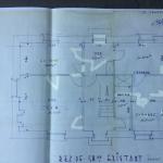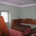 Het huis in door de noord deur, let op de plafondhoogte (!), de gang 10m² met ingebouwde kasten (een van de vorige eigenaren was timmerman), rechts de keuken 10m², daarachter de woonkamer 15m². Links een tussenkamer 10m² met ingebouwde kast, vervolgens een slaapkamer 10m². Links naast de trap een kleine badkamer met wastafel, toilet en (zit)bad 3,5m².