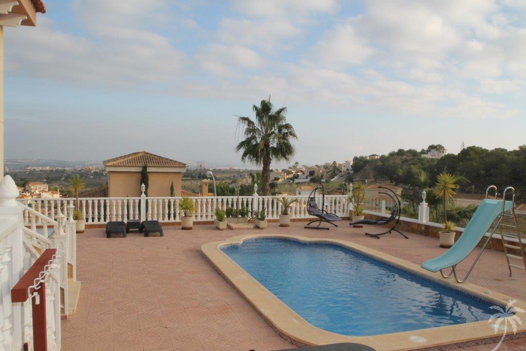 A special house in a nice neighbourhood. The house is located nearby San Miguel and all amenities are easy to reach by car. The house is divided into a few areas: the main house and two guest apartments. The house has a living / dining room, a kitchen, a master bedroom with an en-suite bathroom and two guest bedrooms with a shared bathroom. The two apartments have a living room, kitchen, bedroom and a bathroom. There also is a private parking spot, heated swimming pool, Jacuzzi, outdoor shower and a garden terrace. There are a lot of golf courses in the area, even as authentic Spanish villages. Please contact us for more information.