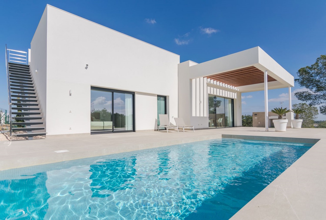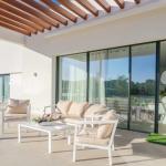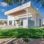 Modern new built villa situated in an exclusive golf resort in Orihuela Costa. This resort has a 24h security, a supermarket, restaurants, etc. The villa is built with the idea of spacious and open areas. It has a spacious and open living room, dining room and kitchen with views at the garden. Everything like also bedrooms and bathrooms are situated on the ground floor. The property has a private swimming pool and solarium with views at the unique environment. Are you interested in this project and do you want more information, please do not hesitate in contacting us.