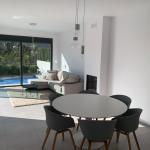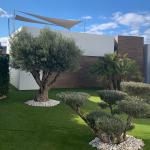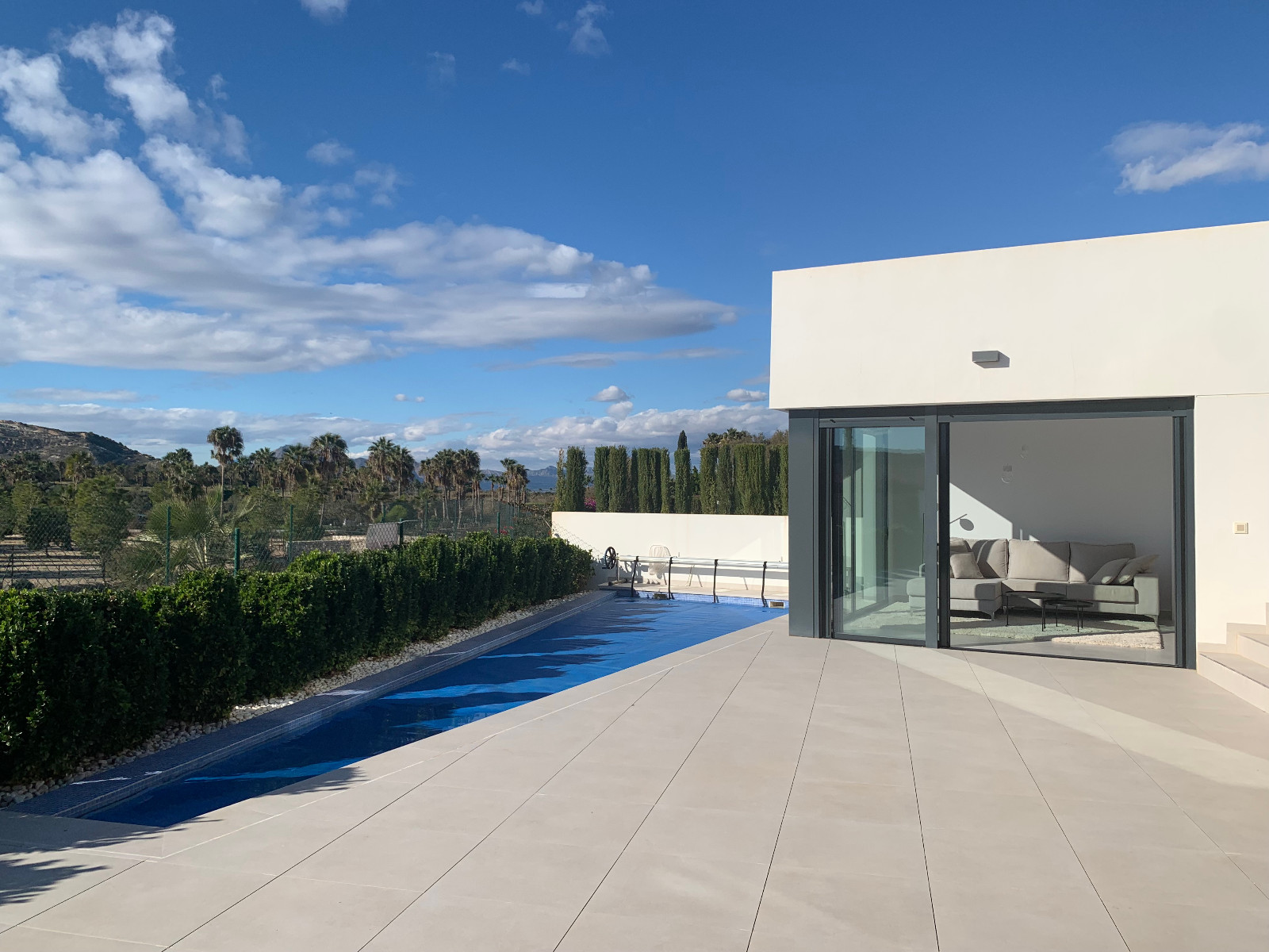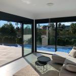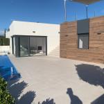 This recently built modern villa is located on a frontline plot on the golf course with panoramic views. The house is completely on one floor and has a lot of light through the large sliding doors. There is a luxury fully fitted kitchen with all appliances, even a wine cooler, a spacious and open plan living dining room with gas fire and direct access to the pool terrace. Furthermore, the house consists of 3 double bedrooms with fitted wardrobes, the master with its own bathroom and also a separate bathroom. Outside is a spacious terrace and your own private pool. The pool is equipped with a cover and an outdoor shower. There is also a large solarium where you can enjoy the beautiful views over the golf course and the mountains. This is the ideal place to enjoy the winter sun or get a nice breeze in the warmer summer months. Finally, there is a large storage room.