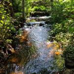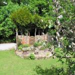 De ligging aan de rand van een meer en de prachtig ontworpen tuin maken een verblijf tot een rustgevende ervaring. In de tuin loopt het water via kleine stroomversnellingen naar een punt waar het onder de weg doorgaat naar een volgend meer. Op verschillende plaatsen zijn heerlijke rustpunten gemaakt. In de tuin nog verschillende bijgebouwen die momenteel vooral voor opslag van materialen worden gebruikt.
