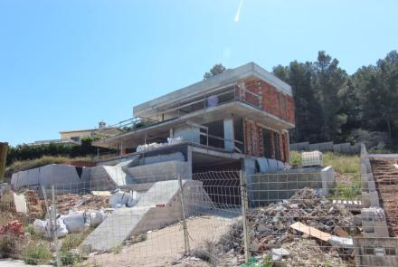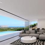 This modern villa is currently under construction. The future buyer will be able to decide in the final phase of the construction and may have his own influence on the way the villa is finished. The villa is located in a quiet area and offers beautiful views of the countryside and the sea. The villa is divided over 3 floors. On the ground floor there is a spacious lounge with dining area, a modern fully equipped open kitchen, 3 double bedrooms with bathroom en suite, a laundry room and a guest toilet. On the first floor is the master bedroom with dressing area and bathroom en suite. In the ground floor there is a double bedroom which can also serve as an office space, a bathroom, a toilet, a gym, a lounge with bar, a home cinema and the garge which is suitable for 2 cars. In addition to the spacious, partly covered terrace with swimming pool, the villa offers a low-maintenance Mediterranean garden.