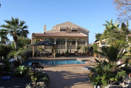 This well-maintained villa is located in La Nucia. The garden is landscaped professionally, with a private pool and beautiful palm trees. A complete outside bathroom was built in the garden, complete with toilet, sink, and hot water shower. Nest to this shower, there is a pergola with a 6 person-jacuzzi. When entering the premises, you first get to the winter salon, with a fireplace. There’s a big open kitchen with built-in appliances. In total there are 7 bedrooms and 3 bathrooms, and a lot of storage space. The villa was constructed in 1998, in a closed urbanization, with automatic gate and communal gas installation. With this property you will receive 3 private parking spots, a sunny roof terrace with sea views and much, much more.