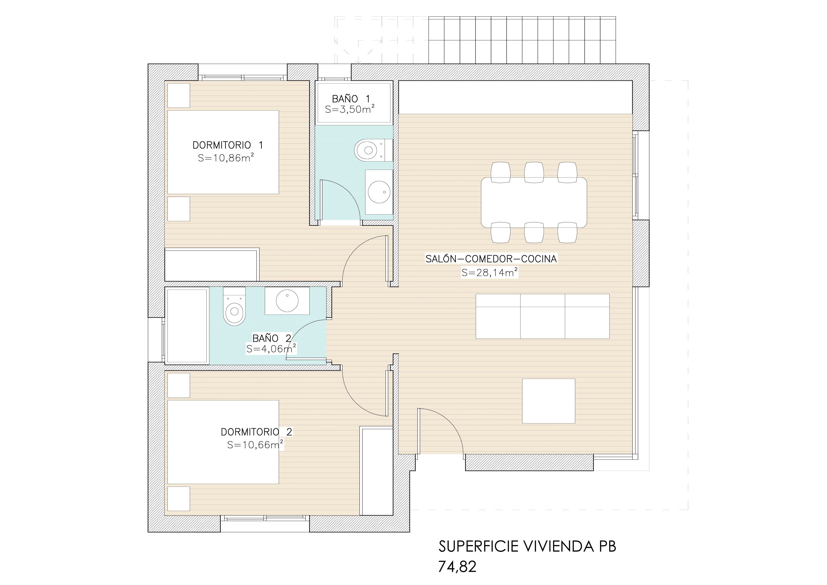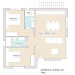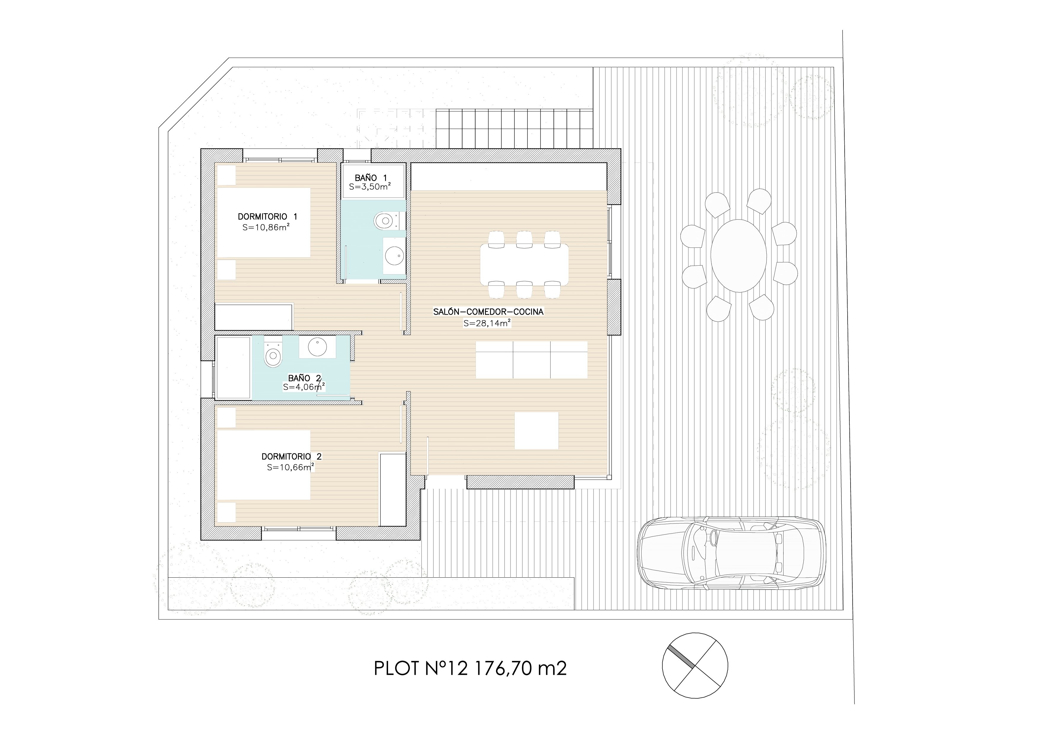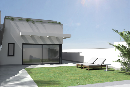 This ground floor new construction villa in Quesada is located in a fresh neighbourhood with good facilities. The house is provided with a landscaped garden and terrace and at additional cost there is the possibility to have a swimming pool placed. The layout of the property is modern, you enter the main entrance from the porch and arrive directly in the living, dining and kitchen area. The two bedrooms are located in the back of the house, one with en-suite bathroom en the second bathroom down the hall. The external stairscase leads you to two solariums to enjoy the Spanish sun. The price is a including a white goods package, screens and underfloor heating in the bathrooms. It is near a salt lagoon and a shopping centre. Do you have questions, contact our office!