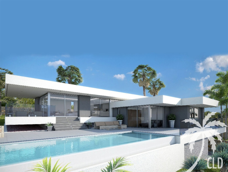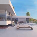 Modern villa with spectacular minimalist design located on well located plot with panoramic sea views in a quiet cul de sac. The House has 206,85 m2 and is divided into entrance hall, living/dining room with large windows and direct access to the terrace, kitchen open to the living room, 3 bedrooms each with en suite bathroom and closet, also the main room of the House has dressing room, toilet service. The price also includes the required elevation for the location of the villa, an elevated pool terrace of 65 m2 with glass and stainless steel handrail. There is also an 8 x 4 infinity pool.