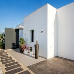 Modern villa project located on a south west facing plot with spectacular views over the mountains and sea in the distance at the end of a small residential area. The intelligent floor plan of the house together with large windows create a perfect blend between interior and exterior. From the open plan living area and two of the three bedrooms you have direct access to the pool area.
