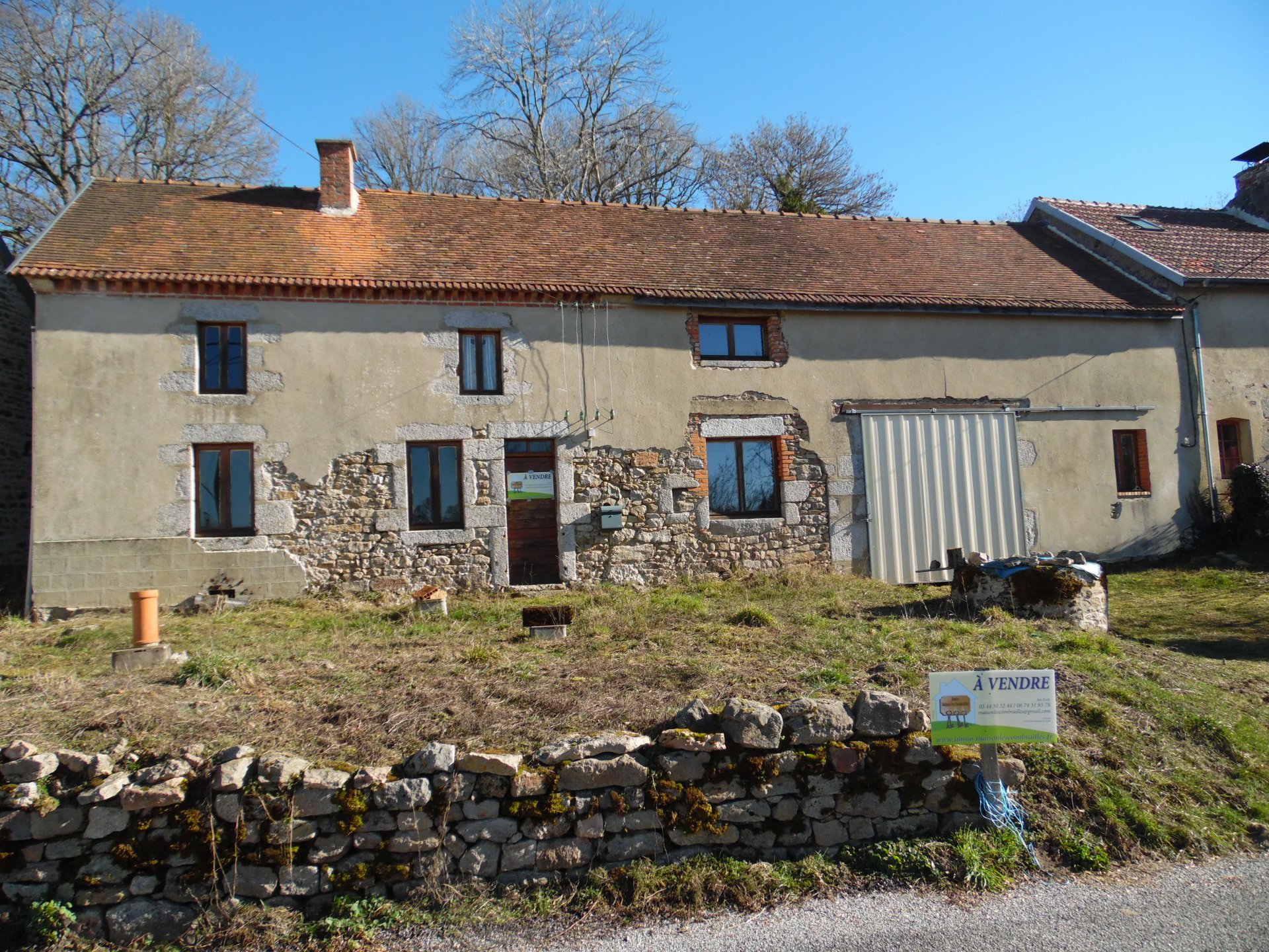 Te koop in de Creuse, natuurstenen huis met schuur en grond.