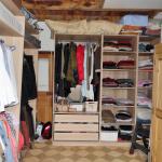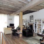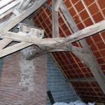 Op de etage is er een groot en zeer aangenaam woonvertrek (56m²) met schouw en houtkachel. Een tweede slaapkamer (15m²) en een ruimte die als dressing dient en waar een vlizotrap is die toegang geeft tot de prachtige zolder waar nog veel ruimte te realiseren is (ongeveer 90m²). Er zou in de dressing gemakkelijk een vaste trap geplaatst kunne worden om zo de zolder beter toegankelijk te maken. Alle vertrekken hebben imposante hoogten en originele balkenplafonds.