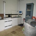 Woonkamer , zeer ruime ingerichte eetkeuken, hal met trap naar etage, een ruime bijkeuken, en toilet.