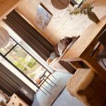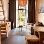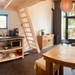 Vanuit de slaapkamer (op entresol) kijk je door het dakraam naar de sterren. Beneden is het 23,4 m2 en boven (slaapkamer) is het 10.3 m2.