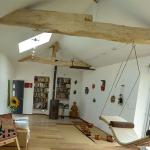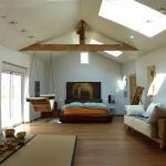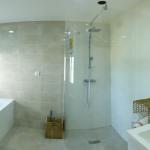 Het ruime gastenverblijf staat schuin tegenover het woonhuis en is bijzonder van opzet. Op dit moment verdeeld in een grote, langwerpige woonkamer met slaapgedeelte. Aansluitend een luxe badkamer met inloopdouche en toilet. Indien gewenst eenvoudig om te toveren in een aantrekkelijk verhuurobject voor 1 of 2 personen die samen met u de passie voor paarden delen.