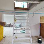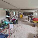 Dan is er nog het fabrieksgebouw van 375 m2 wat twee verdiepingen is, dus 750 m2 te benutten ruimte.