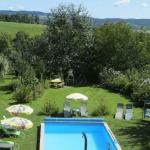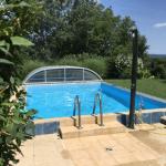 Het goed onderhouden panoramische perceel van 2.690 m² met sierstruiken en fruitbomen biedt aangename privacy. Er is een overdekt zwembad op de binnenplaats.