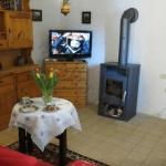 De kleine boerderij heeft een woonkamer, een keuken, een slaapkamer en een badkamer.