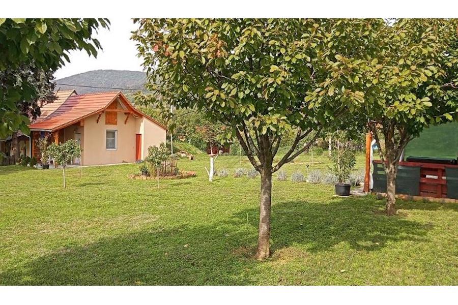 Perceel is een 1.440 m2 groot en goed onderhouden. In het mooiste deel van de tuin is er een overdekt terras van 15 m² en een kleine tuin, met een prachtig uitzicht op de wijngaarden van Siklós.Op het perceel nog een schuur/werkplaats met een aparte ingang en een kleine gewelfde, droge kelder van 16 m² van baksteen.