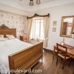 De trap op komt men in de hal. In totaal 2 slaapkamers (beide 12m2) waarvan 1 met badkamer met bad, wastafel en wc (5m2). Woonkamer (13m2). Keuken met gasfornuis en koelkast (18m2)