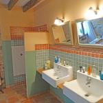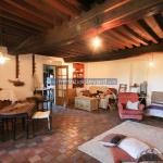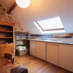 Keuken met houtkachel, slaapkamer (11.5m2) met zitbad, grote woonkamer (37 m2) met openhaard, badkamer met douche, dubbele wastafel en bad. Gang/entree. Toilet.